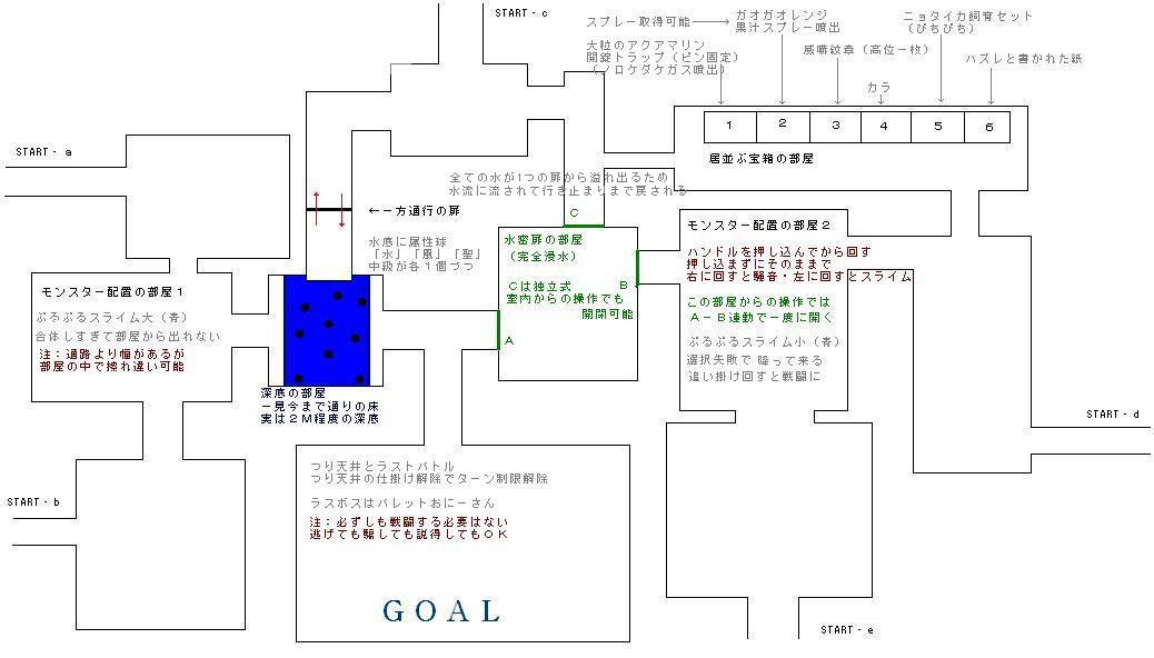・水密扉Cから開けた場合、仕掛けはないが、全ての水が1つの扉から溢れ出るため、水流に流されて行き止まりまで戻される